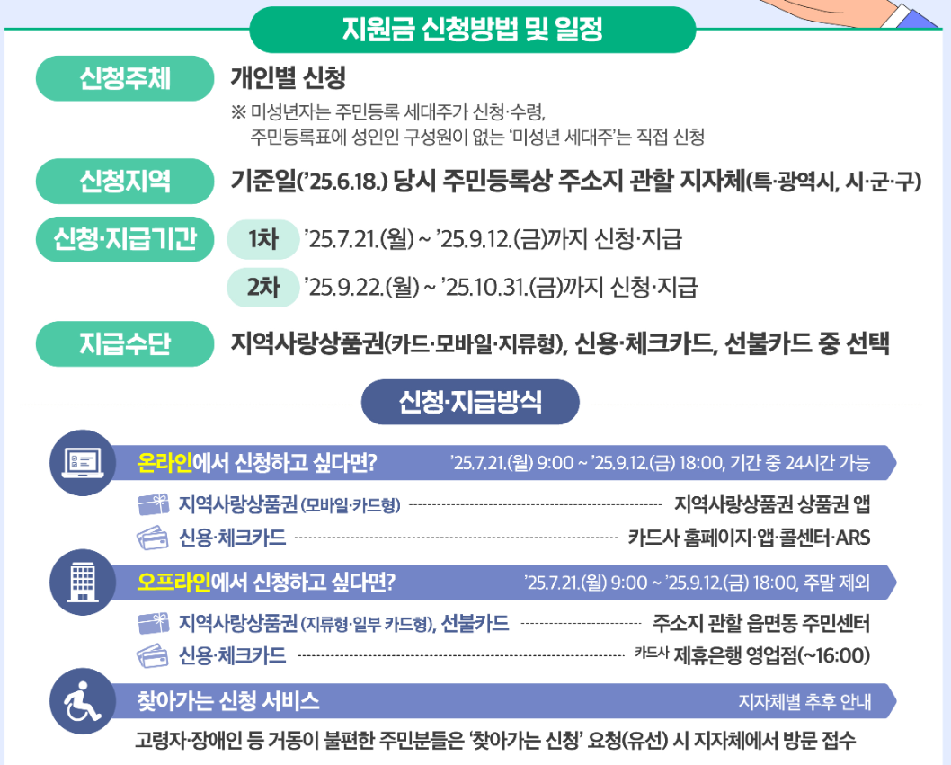 신청자는 원하는 형태(카드/상품권 등)를 선택하여 소비쿠폰을 수령할 수 있으며, 이중 신청은 불가능합니다.